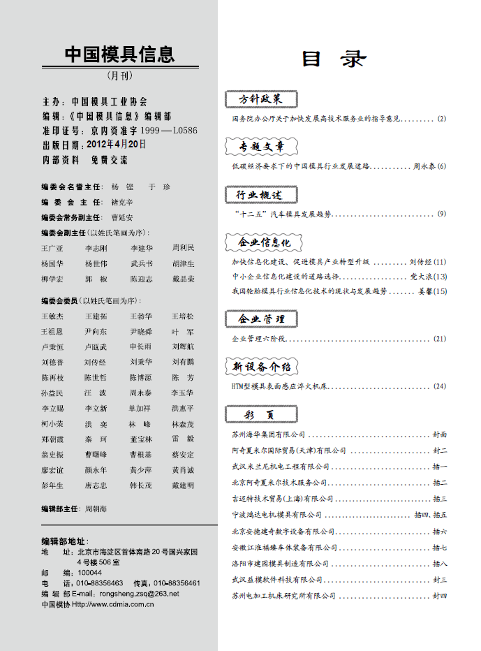 模具行業(yè)“十四五”發(fā)展綱要? ?100元/本? ? ?聯(lián)系電話:010-88356463
