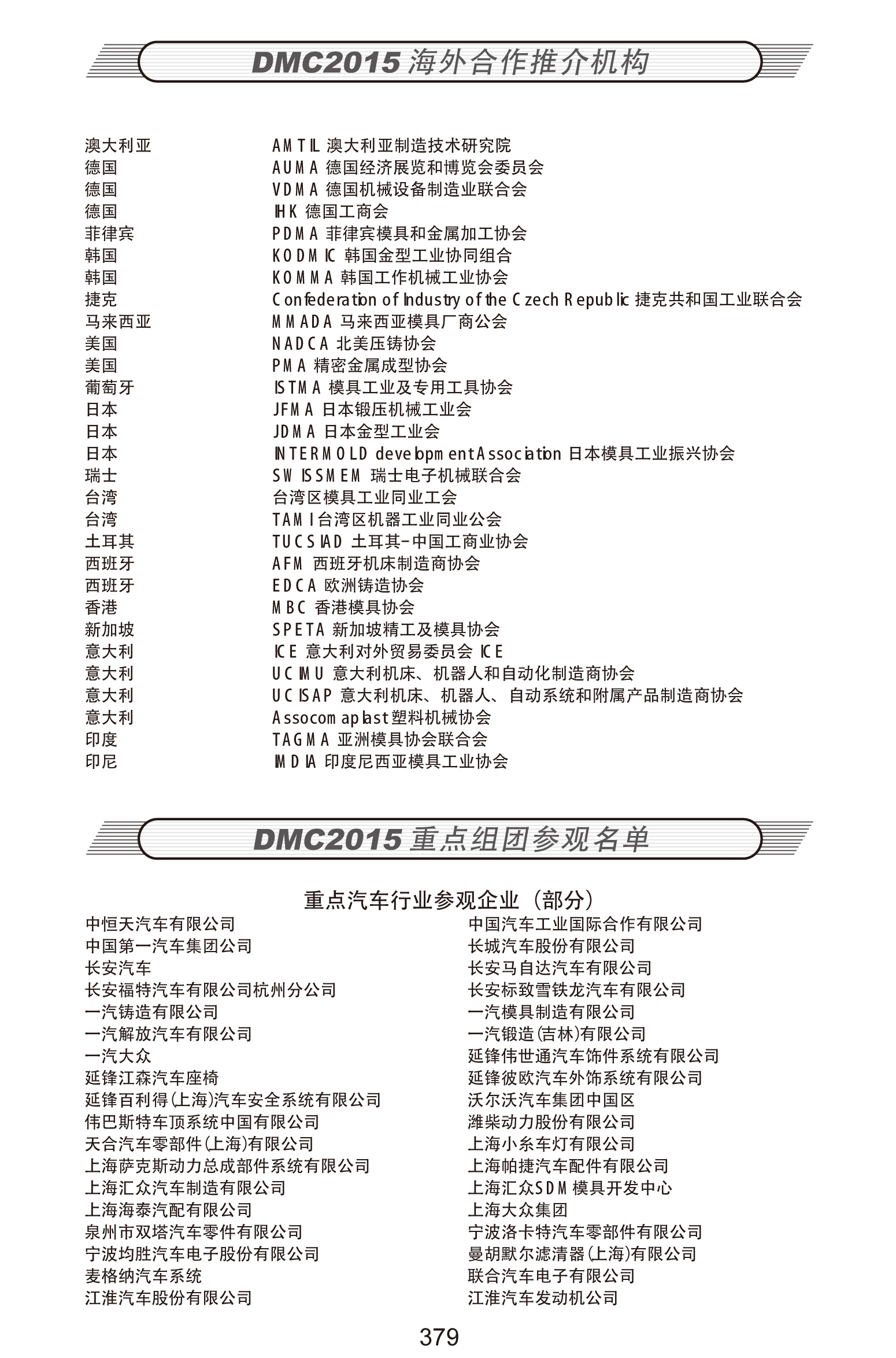 DMC2015海外合作推介機構、重點組團參觀名單