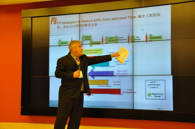 工業4.0下汽車模具技術交流和研討會由汽模委秘書邢忠憲主持,華中科技大學柳玉起教授做了汽車覆蓋件智能化設計與成形模擬的技術報告;加拿大FTI公司全球副總裁麥克做了覆蓋件工藝工程革新:全球領先的工程和成本策略和解決方案的技術報告;美國ETA公司徐金波經理做了仿真分析中熱成形中的應用的技術報告;CAXA數碼大方的楊維明副總經理做了模具行業精益研發創新服務平臺的技術報告;美國SMIRT WARE INC 公司的工業顧問Mr. Cosimo Galante做了沖壓模具制造量身定制的軟件方案的技術報告。來自中國,美國,加拿大的各位專家針對汽車沖壓模具的技術、設計、制造、成本控制、等一系列問題的解決方案,以及精益研發創新平臺等精彩精辟的演講,使大家受益匪淺,實時掌握國際汽車模具技術的新動態、新觀念、新方法、新思維、新技術。