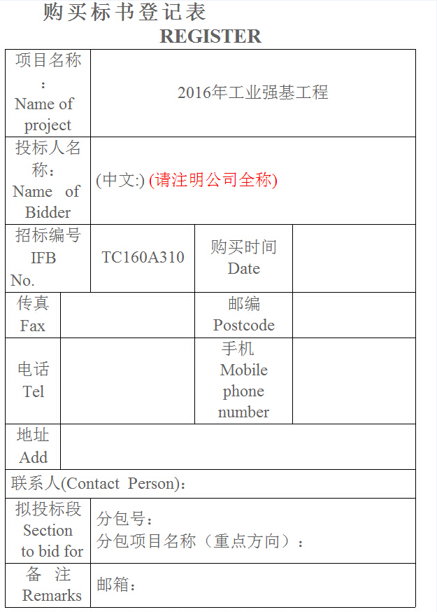 3、招標文件每包600元人民幣,售出不退,沒有購買招標文件的投標將被視為無效投標而被否決。如需郵購,請按我公司相關財務信息匯款,匯款單上應注明匯款用途、所購招標文件編號/包號,然后將匯款單復印件,購買單位名稱、詳細通訊地址、郵編、辦公電話、手機、傳真及聯(lián)系人等內容傳真給我公司(詳見購買標書登記表附后),我公司收到傳真后將盡快以快遞方式將招標文件郵寄給貴單位,如需要可提供所購招標文件電子版。