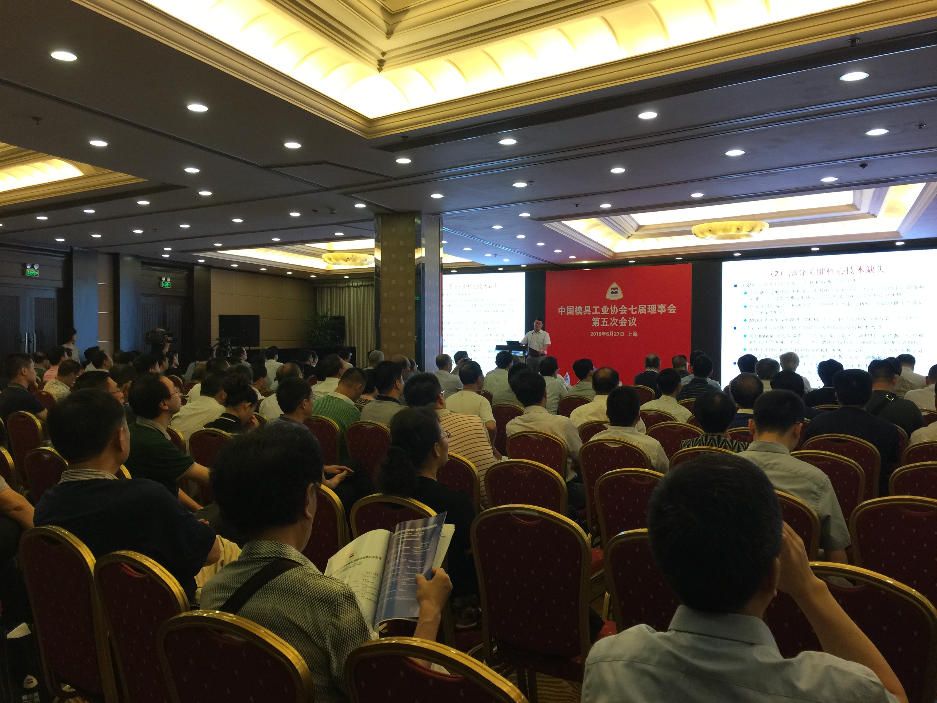2016 年6 月27 日, 中國模協第七屆理事會第五次會議在上海召開。中國模具工業協會名譽會長于珍、褚克辛,工信部產業政策司產業組織處匡佩遠處長,中國模具工業協會副會長、理事240 余人出席會議。中國模協副會長黃紹滸主持會議。