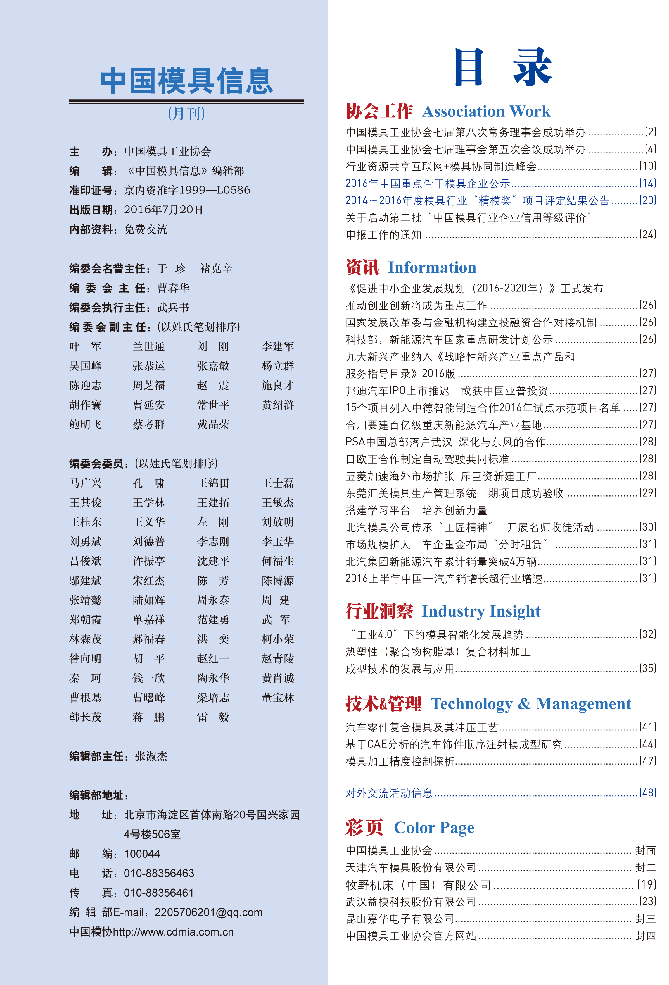 中國模具信息2016年第七期目錄