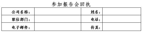 如您決定參加本次會議,請填寫以下回執,并聯系現場聯絡人:伊孝瀟:13817963505, xiaoxiao@siec-ccpit.com;馬旸:13764183117,mayang@siec-ccpit.com