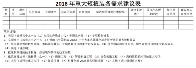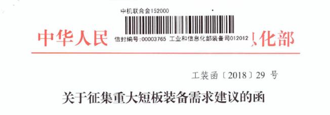 2018118日工信部裝備司下發《關于征集重大短板裝備需求建議的函》,