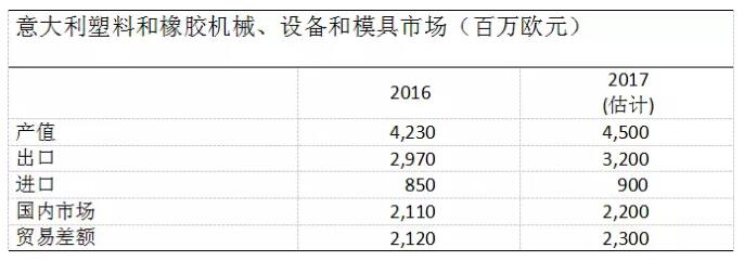 根據意大利塑料橡膠加工機械和模具行業協會(Amaplast)研究中心對2017年1-9月ISTAT外貿數據的分析,與2016年同期相比,進口增長12%,出口增長16%。貿易順差增幅超過17億歐元,增加了17個百分點。
