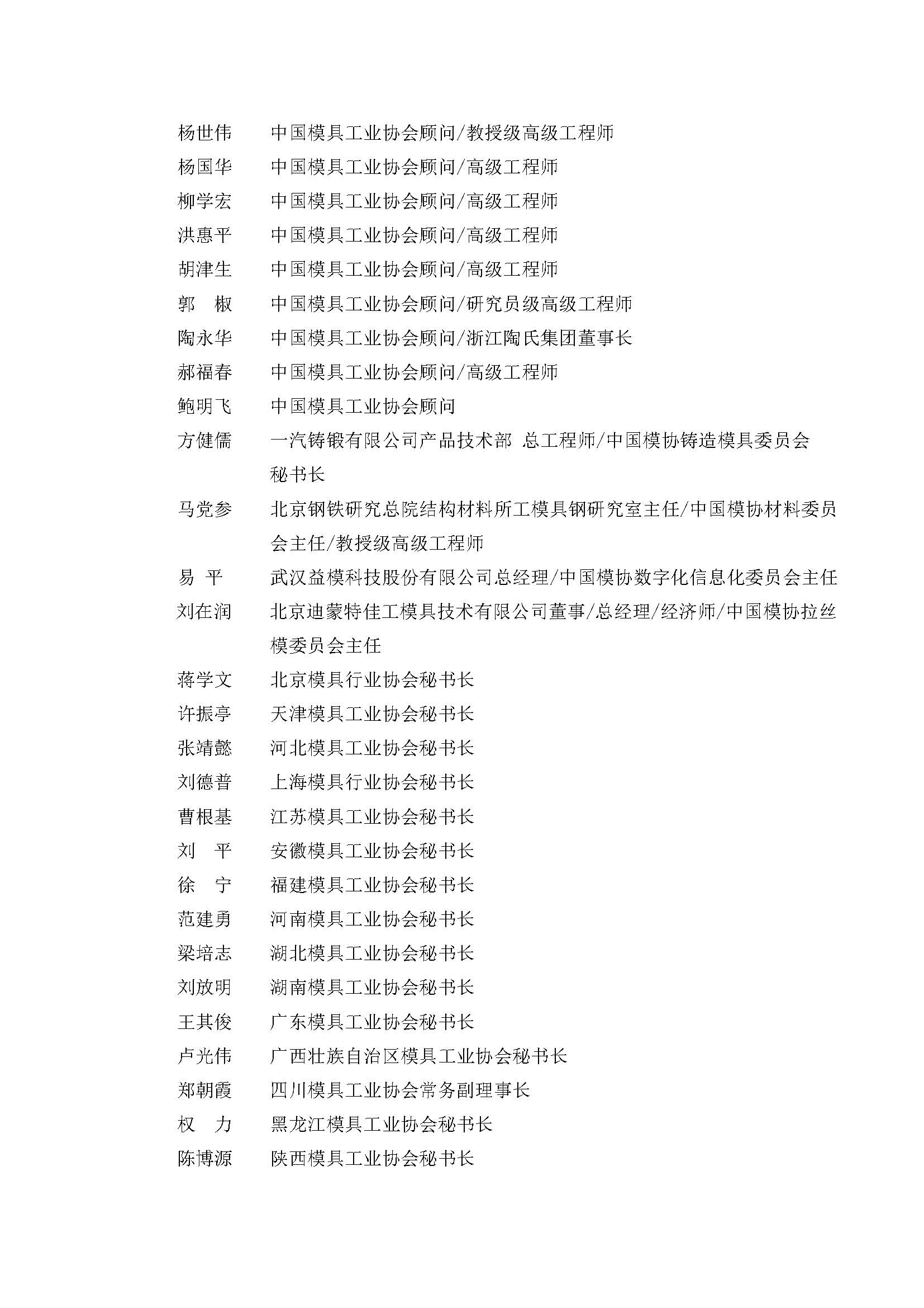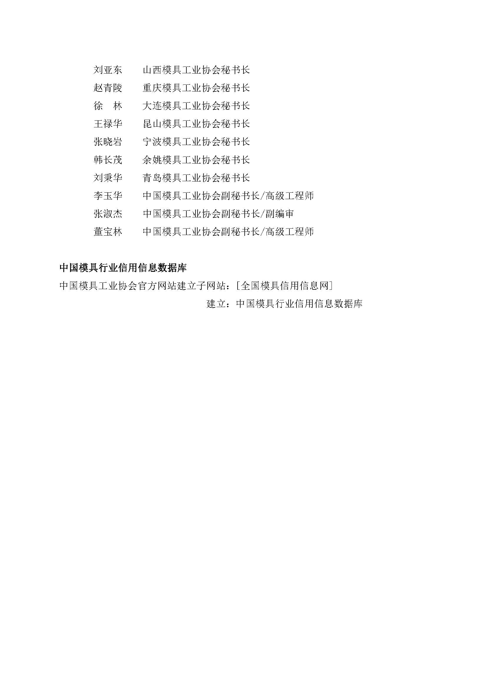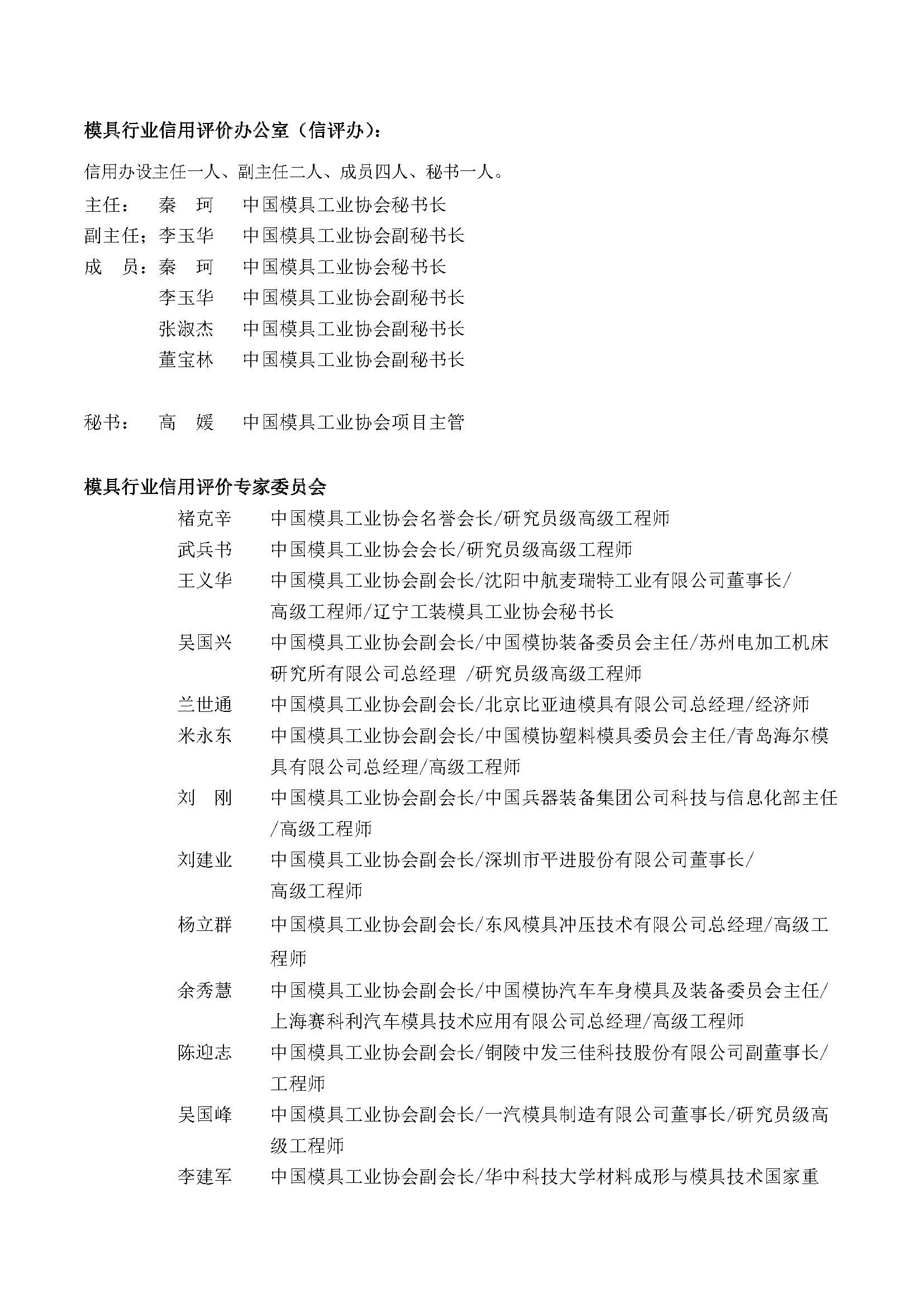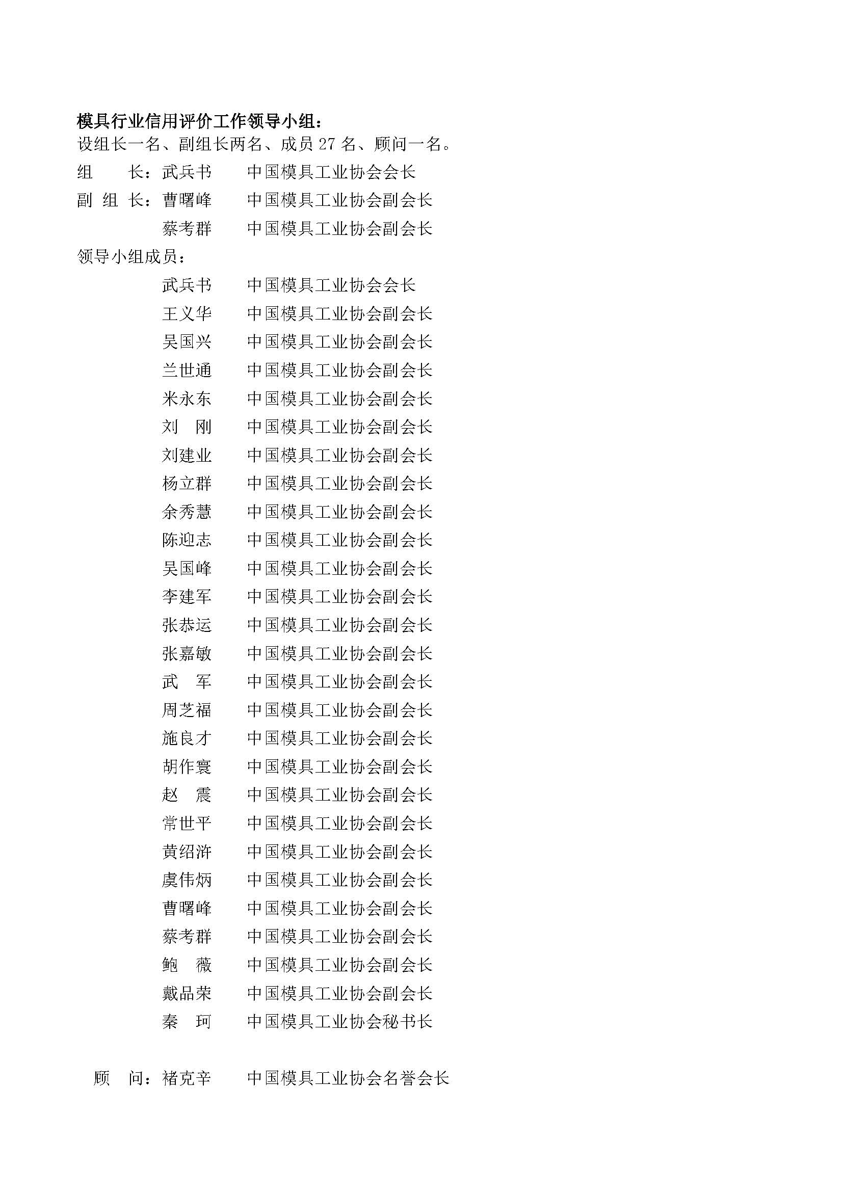 模具行業(yè)信用評(píng)價(jià)工作組織機(jī)構(gòu)名單