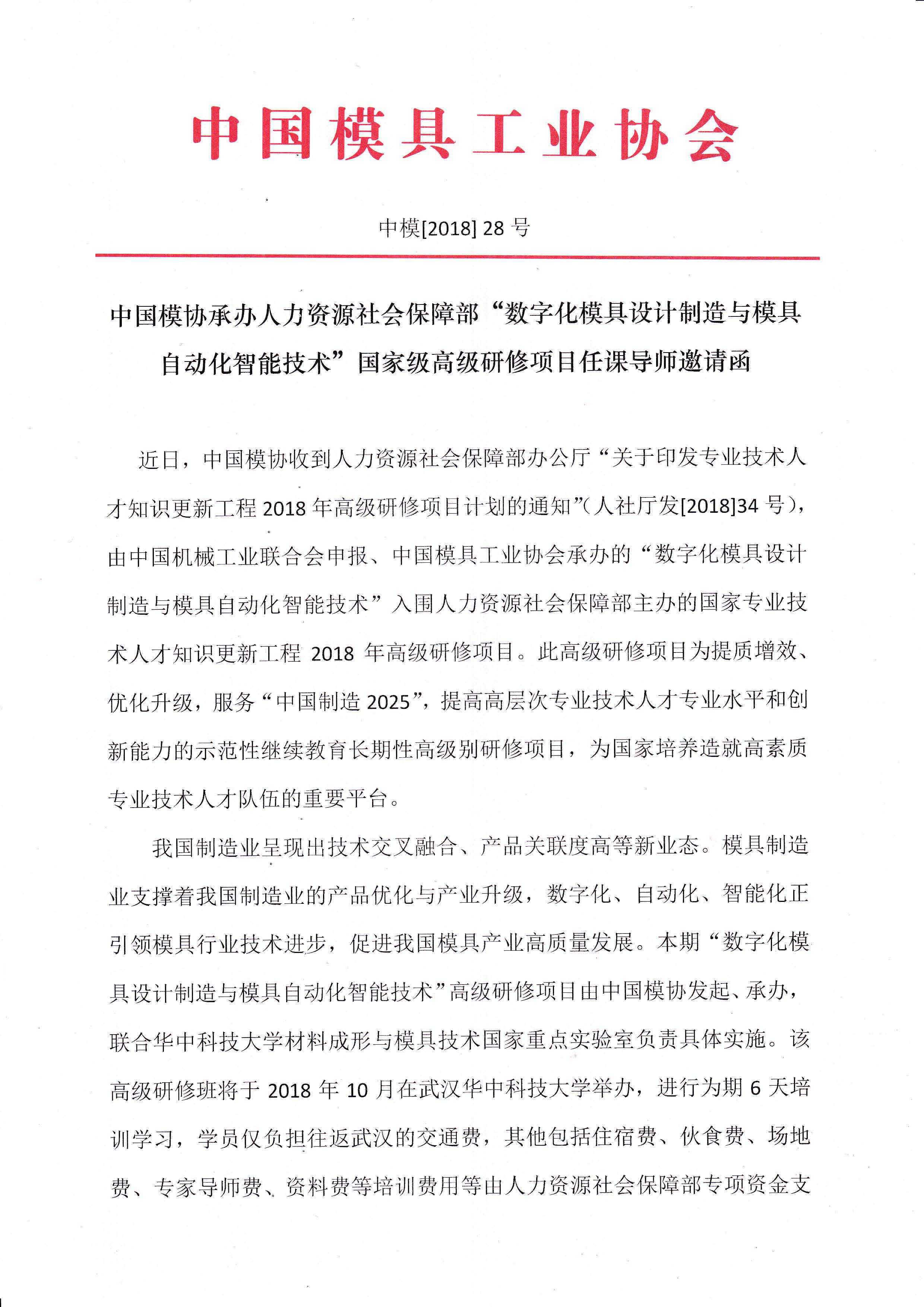 中國模協(xié)承辦人力資源社會保障部高級研修項(xiàng)目任課導(dǎo)師邀請函