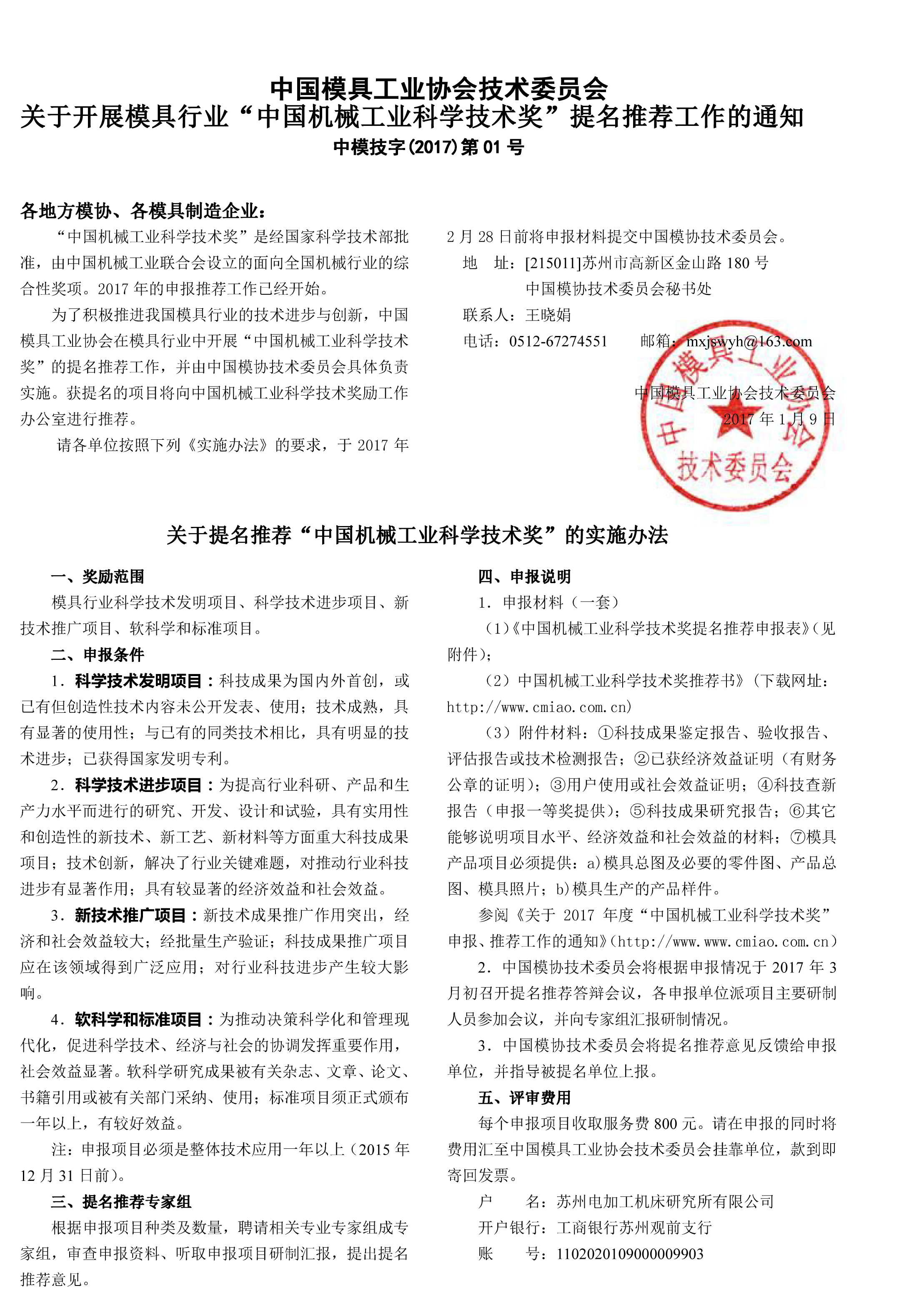 參閱《關于2017年度“中國機械工業科學技術獎”申報、推薦工作的通知》(http://www.cmiao.com.cn)