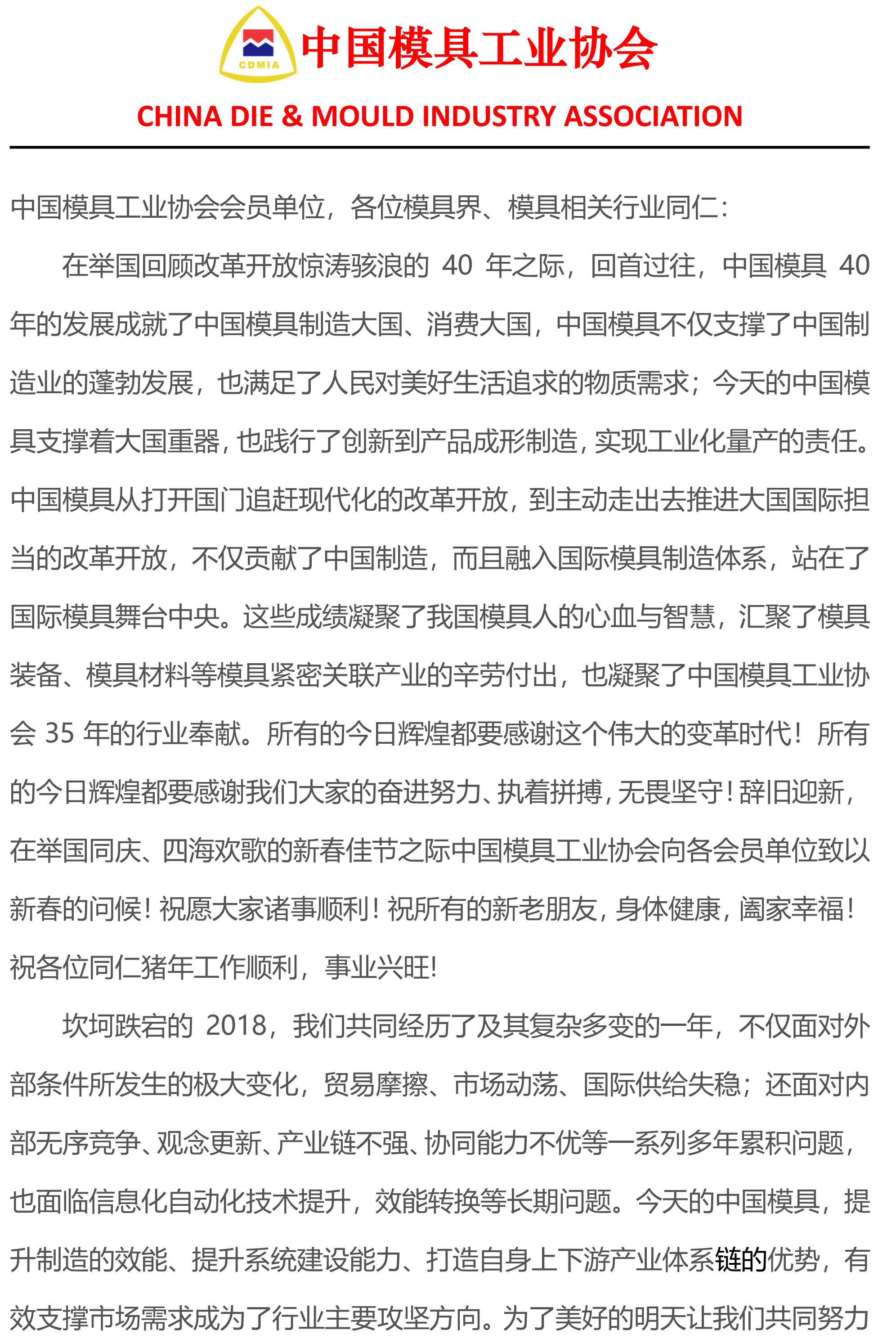 中國模具工業協會給大家拜年啦!