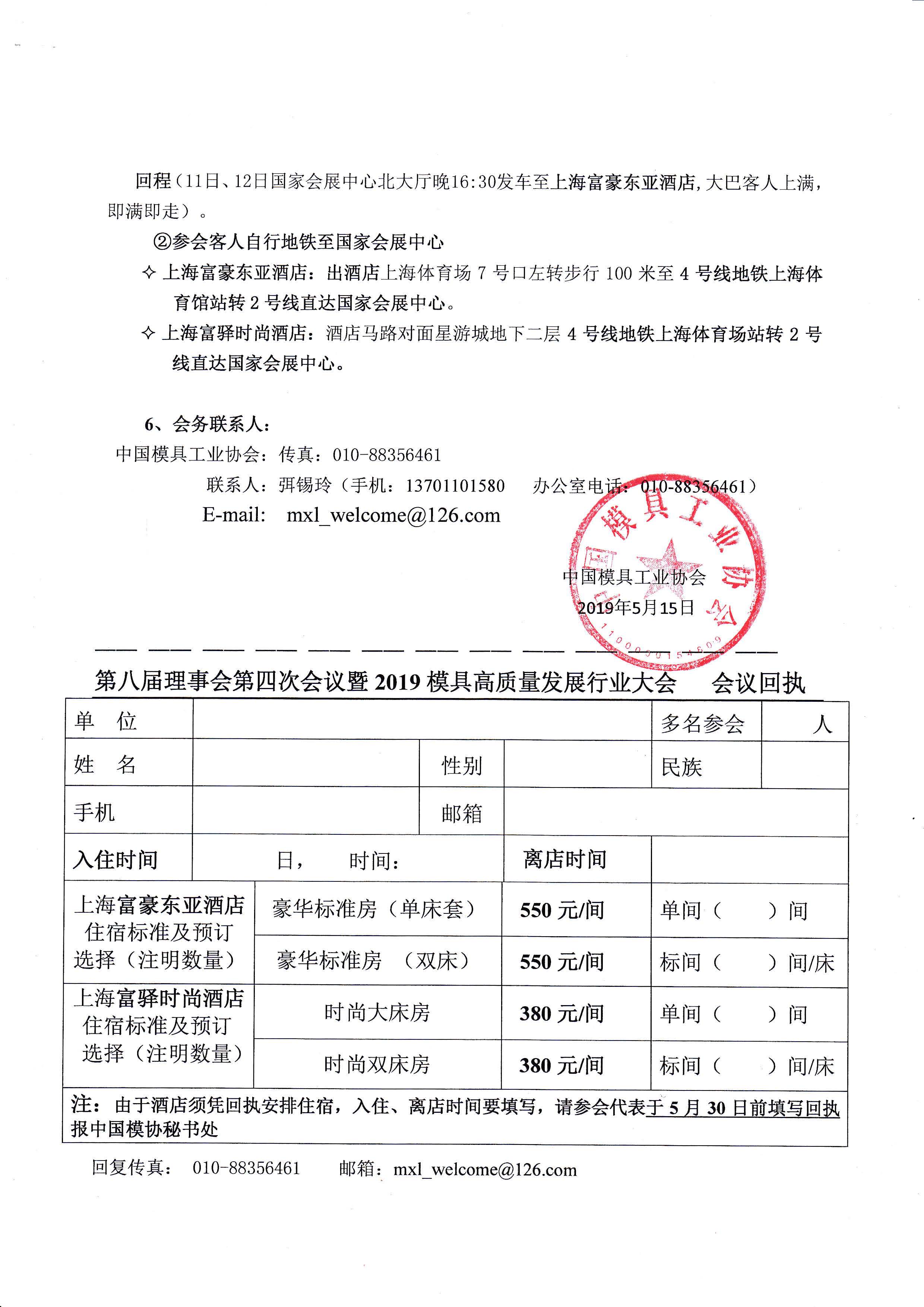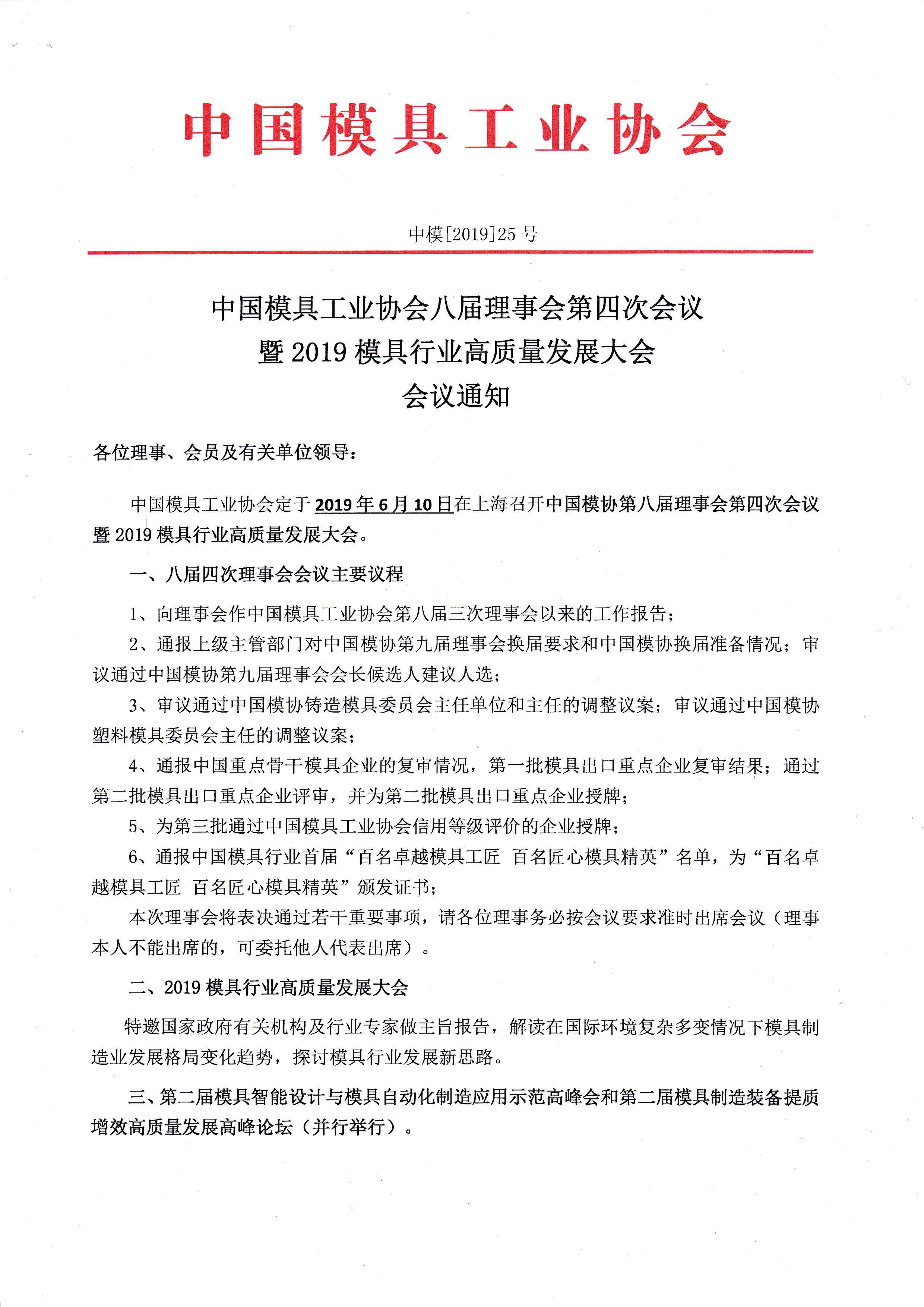 中國模具工業(yè)協(xié)會八屆理事會第四次會議暨2019模具行業(yè)高質(zhì)量發(fā)展大會會議通知