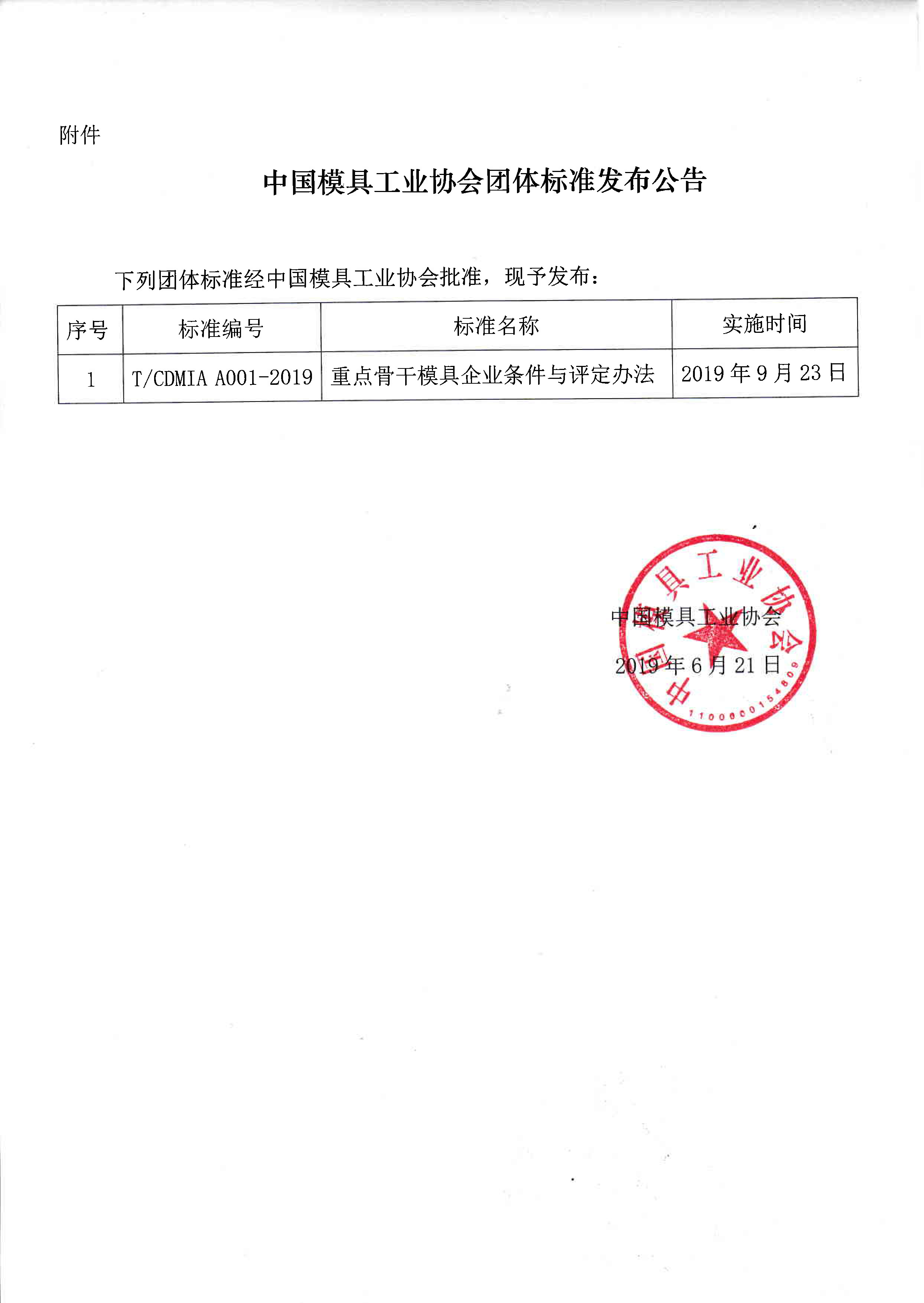 關(guān)于發(fā)布《重點(diǎn)骨干模具企業(yè)條件與評(píng)定辦法》團(tuán)體標(biāo)準(zhǔn)公告的通知