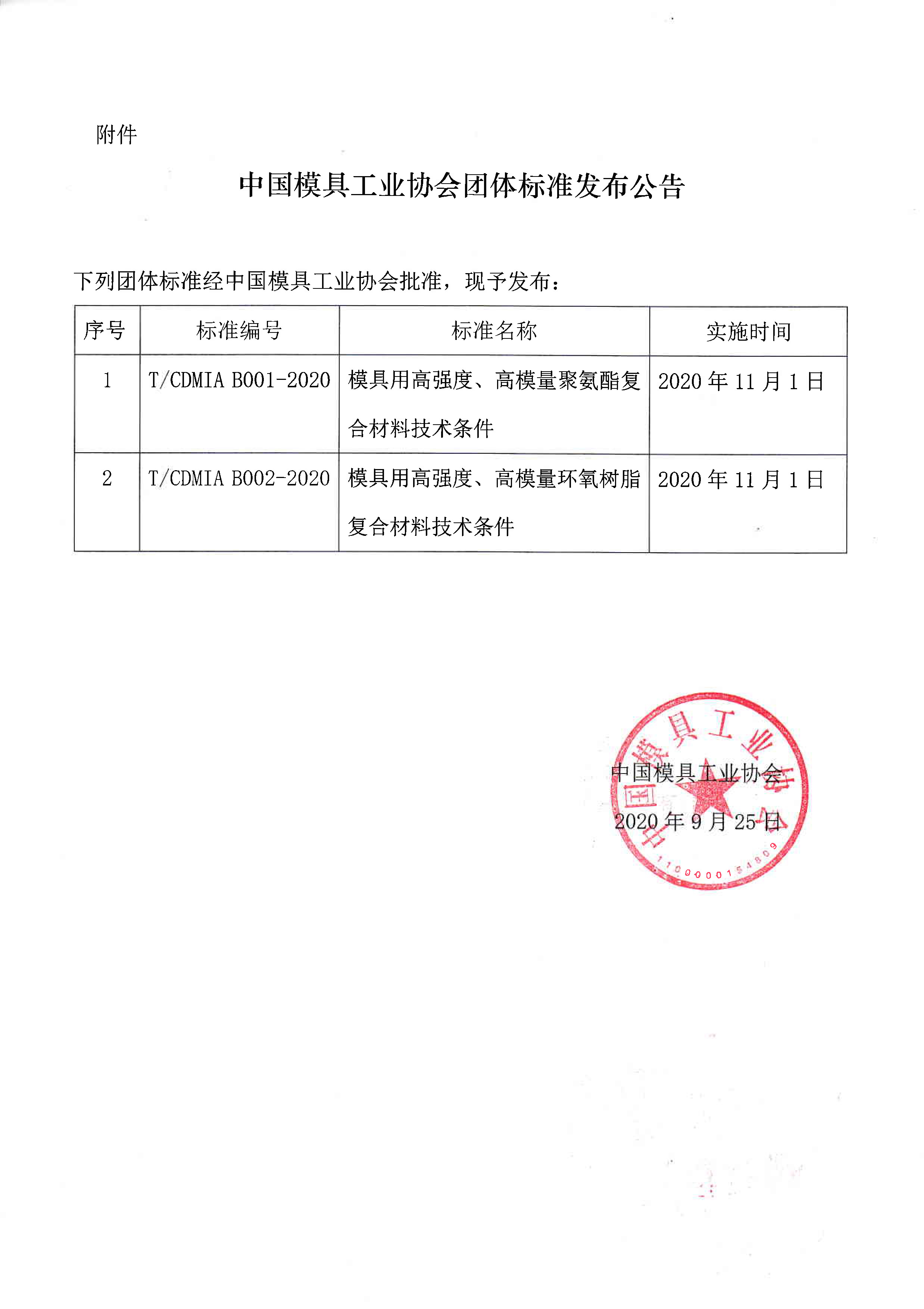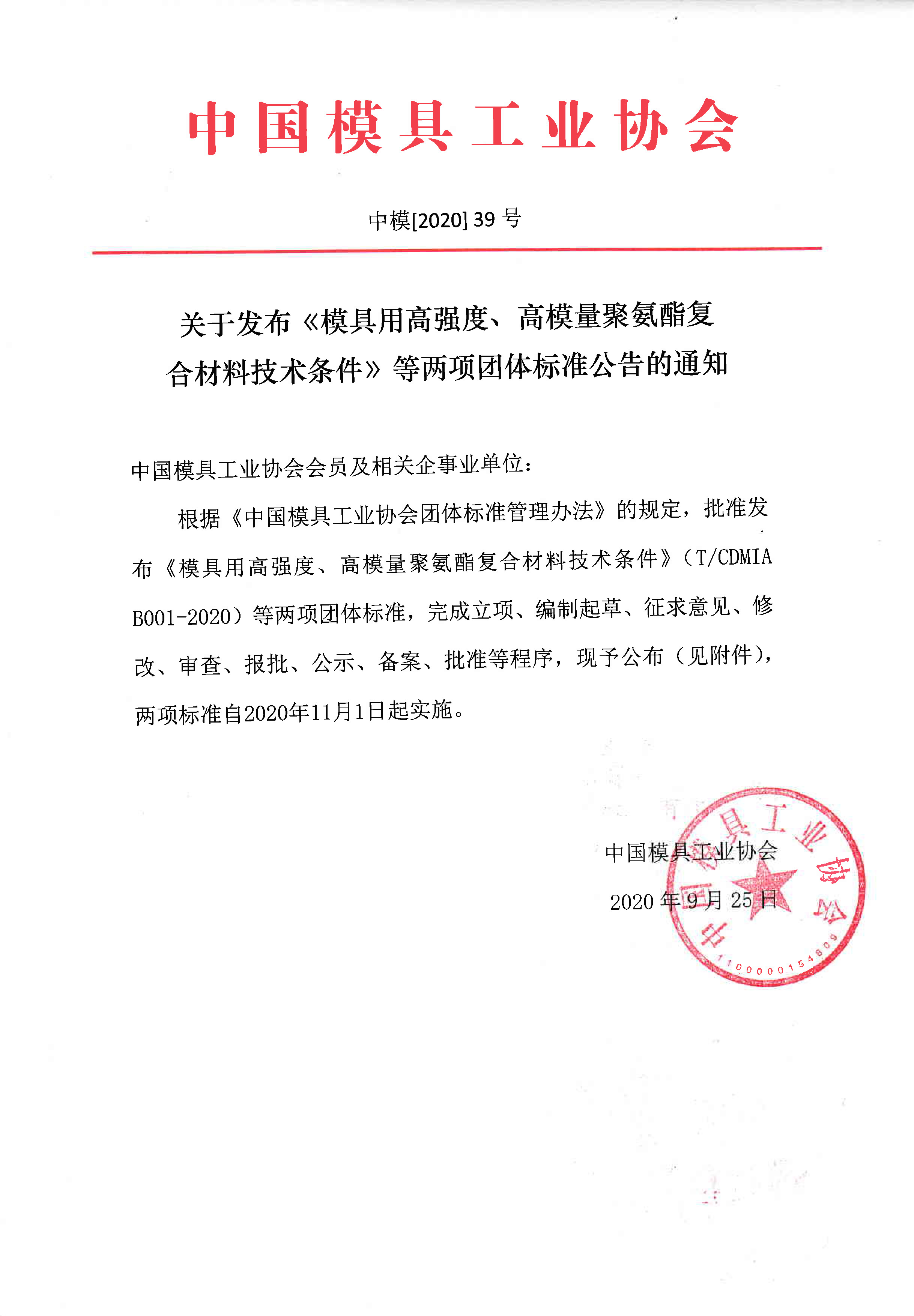關(guān)于發(fā)布《模具用高強度、高模量聚氨酯復(fù)合材料技術(shù)條件》等兩項團體標準公告的通知