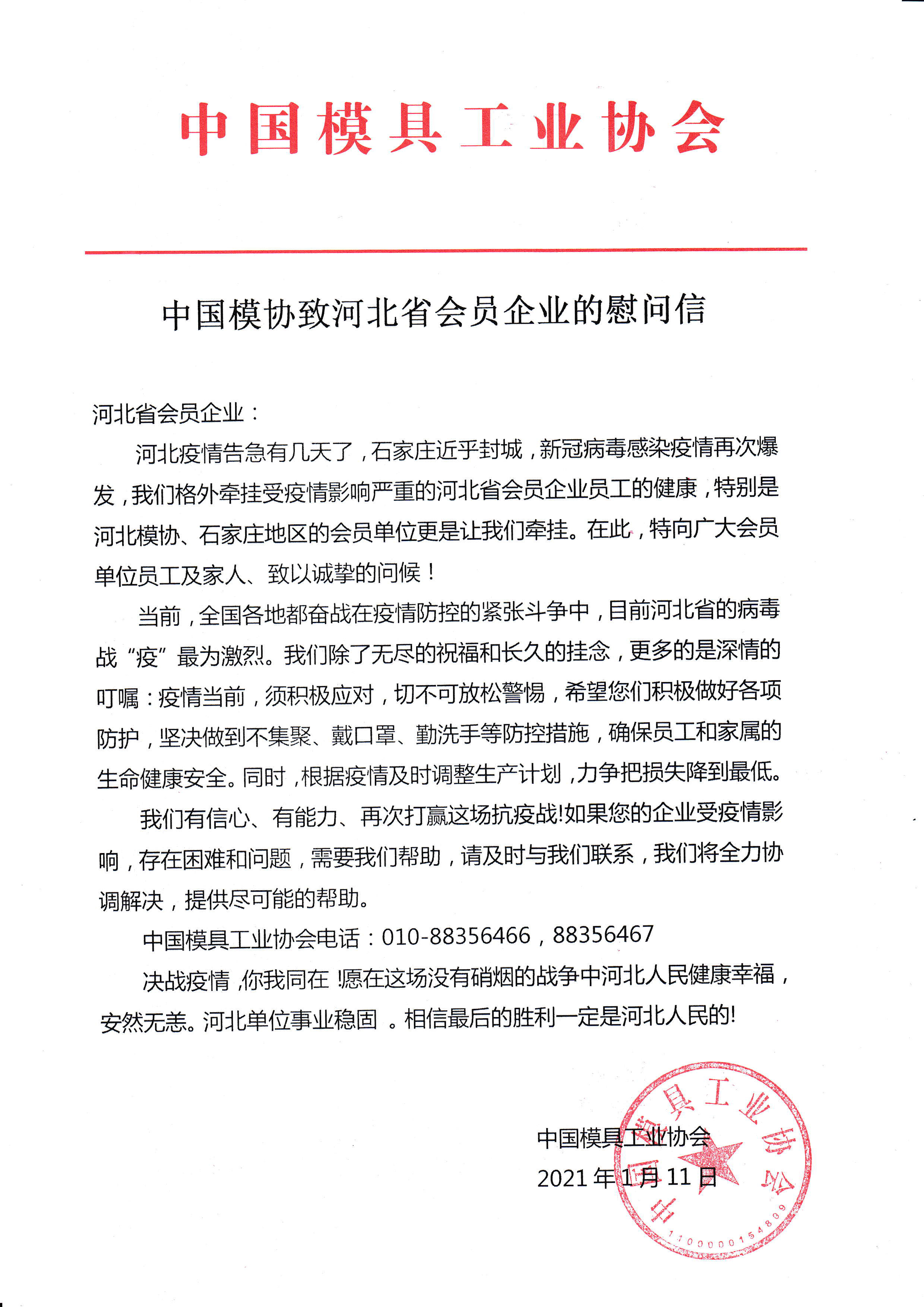 中國(guó)模協(xié)致河北省會(huì)員企業(yè)的慰問(wèn)信