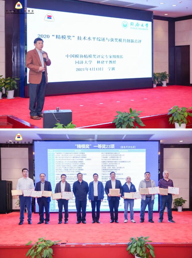 中國模協精模獎評定專家組組長、同濟大學林建平教授對2020“精模獎”技術水平綜述與獲獎模具創新進行了精彩點評。常會長、黃會長為“精模獎”團隊及“優秀供應商”單位頒發獎牌證書。