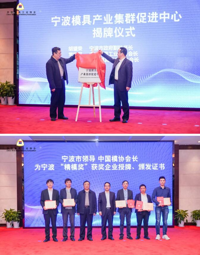 接著,北侖區領導介紹大碶高檔模具產業園創新綜合體建設情況,寧海縣領導介紹寧波市模具產業園創新綜合體建設情況,寧波模協秘書長、天正董事長張小巖介紹寧波中模云平臺建設運行情況,寧波市經信局介紹寧波模具產業集群建設方案。胡望榮與中國模具協會會長常世平共同為寧波模具產業機器促進中心揭牌,中模云平臺還與各地方協會進行了現場簽約,寧波市領導、中國模協會長為寧波精模獎獲獎企業頒獎。獲獎代表臉上主笑容、眼中有光,是對成績的驕傲,是對未來的憧憬。